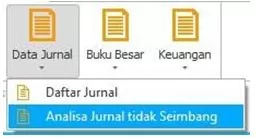 Menu ini berfungsi untuk analisa jurnal yang tidak seimbang, jurnal tidak seimbang ini maksudnya adalah antara debit dan kredit tidak sama, maka secara otomatis akan tampil.