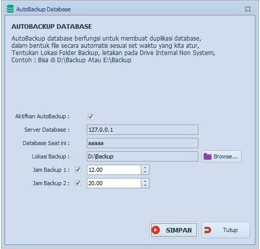 - Aktifkan Autobackup : Berfungsi untuk mengaktifkan Autobackup. PENTING : Autobackup bisa aktif jika program sudah diaktivasi.