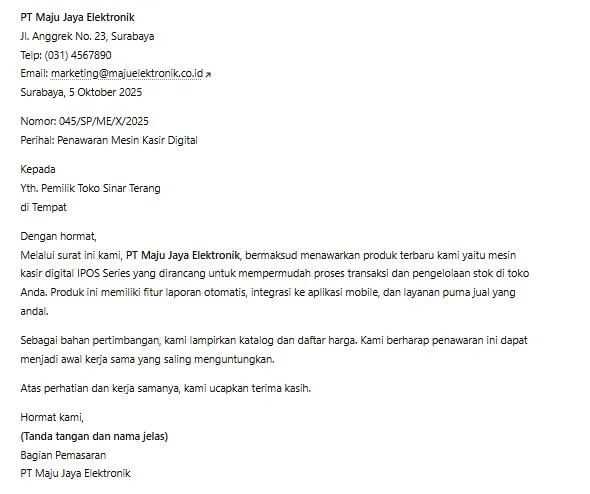 Berikut contoh surat niaga penawaran sederhana yang bisa Anda jadikan sebagai referensi :