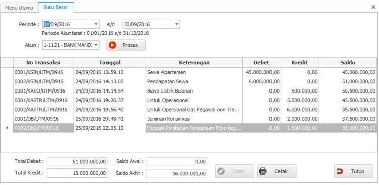 - Pilih rentang Periode buku besar yang akan ditampilkan,