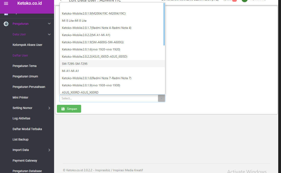 A : Untuk list device tidak bisa dihapus. List device tersebut menandakan perangkat mana saja yang pernah terhubung dan digunakan untuk mengakses Ketoko.