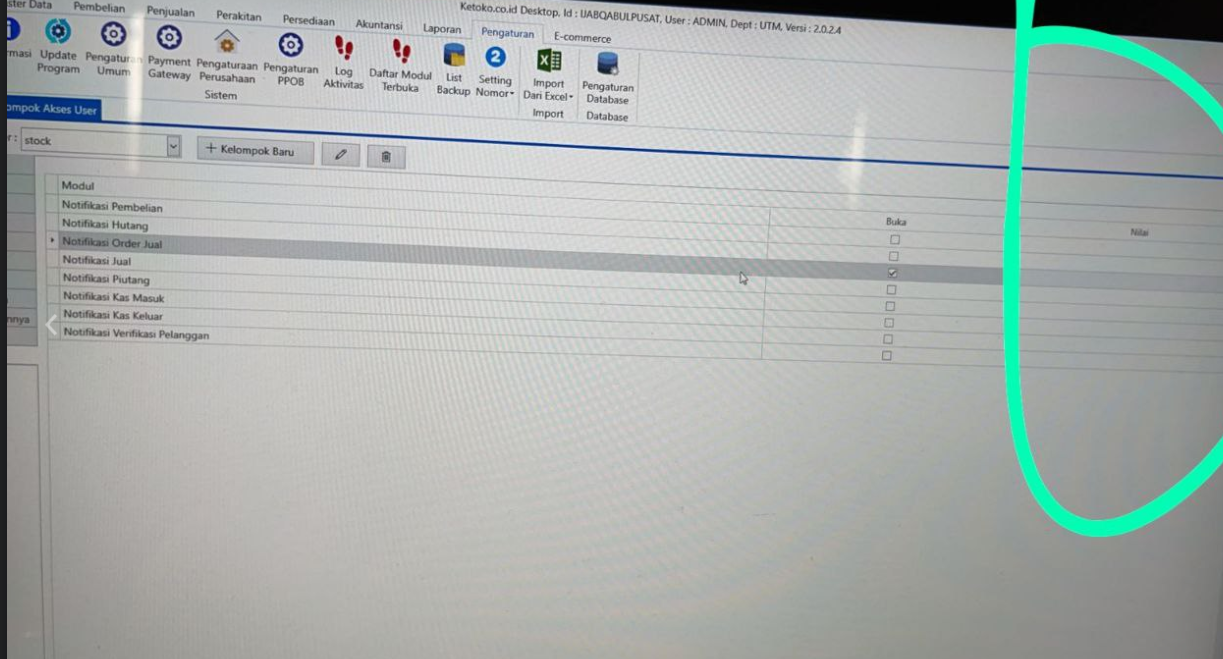 Q : Mohon info fungsi mengenai Nilai pada Notifikasi di kelompok akses user seperti gambar berikut untuk apa ya ?