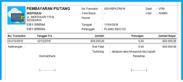 Berikut adalah contoh laporan bukti pembayaran hutang,