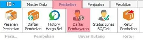 Daftar pembayaran juga digunakan untuk menampilkan, mengubah dan menghapus transaksi pembayaran hutang.