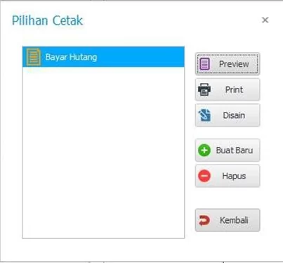 - Pilih salah satu data pembayaran dari daftar pembayaran hutang,