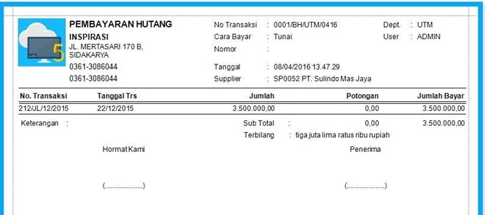 Berikut adalah contoh laporan bukti pembayaran hutang :
