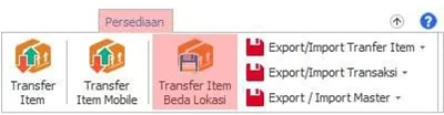 Transfer Item Beda Lokasi berfungsi untuk memindahkan stok item ke cabang beda lokasi / alamat. Pemindahan stok ini menggunakan metode dengan mengirimkan file melalui Flashdisk/Email.