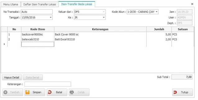 Jika anda menggunakan fitur transfer item beda lokasi maka diwajibkan untuk tidak mengubah-ubah kode item, supplier, pelanggan dan sales.