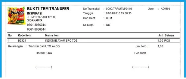 Mencetak bukti item tranfer :