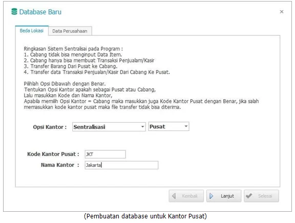 - Membuat database pada kantor pusat dengan default kode adalah JKT