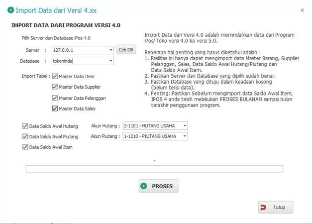 Pada program ini anda juga dapat melakukan import data dari Program Toko versi iPos 3.0 dan 3.3, data yang bisa di import hanya data Barang, Suplier, Pelanggan dan Sales.