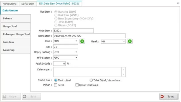 - HPP System : Adalah sistem perhitungan HPP, Menggunakan FIFO, AVG, atau LIFO, Rekomendasi = FIFO.