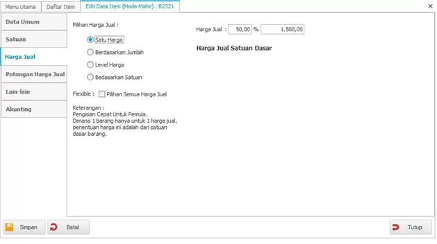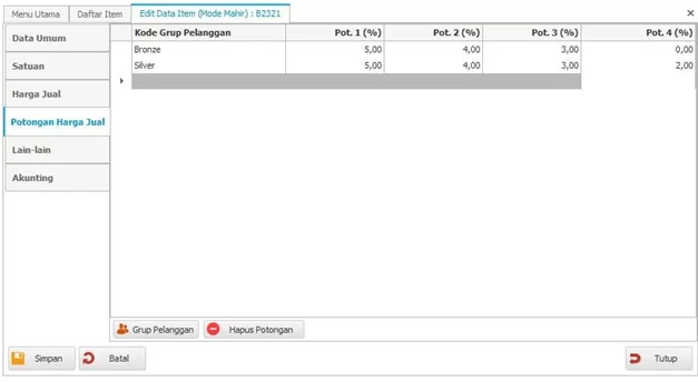 - Potongan harga jual tidak harus diisi, terkecuali memang dibutuhkan.
