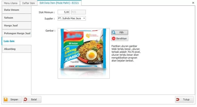 6. Input Minimum Stok, Suplier dan Gambar.