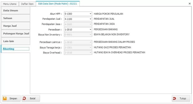 Edisi Profesional = Terdiri dari Tipe Barang, Jasa, Rakitan dan Non-Inventori.