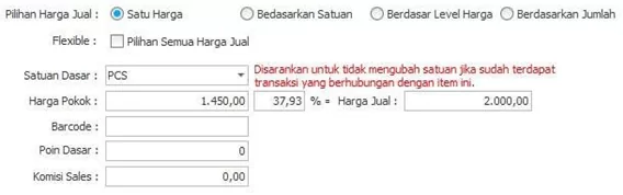 Sehingga saat transaksi anda bisa mengganti memakai Harga Jual Satu Harga, Satuan, Level atau Jumlah.