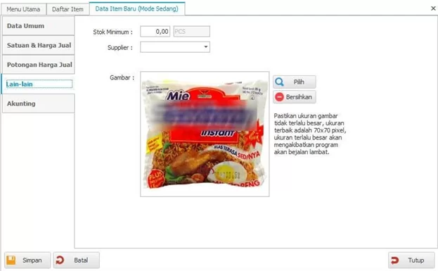 7. Klik Tombol Simpan untuk menyimpan data item.