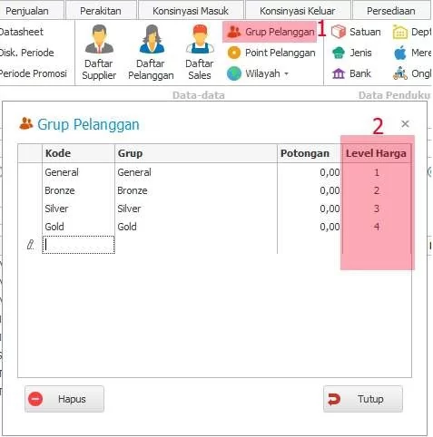 - General / Umum : Set pada Level 1, ini untuk pelanggan umum, tanpa ada harga