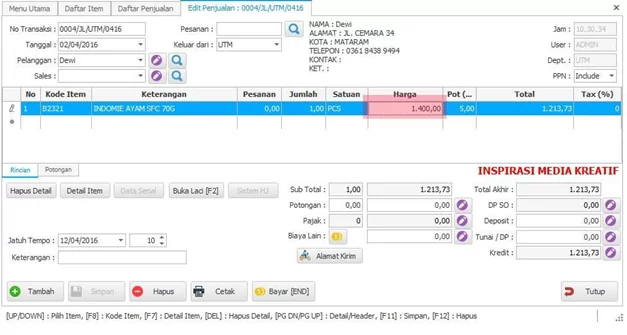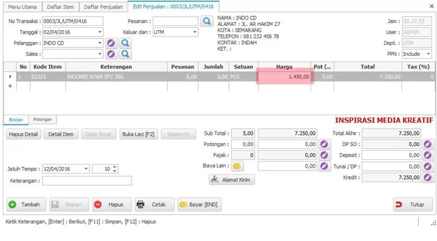Setelah selesai mengatur Harga Jual selanjutnya cobalah transaksi penjualan, sebagai berikut :