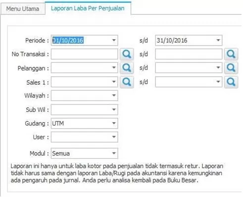 Laporan ini berfungsi untuk menampilkan / mencetak laporan laba jual pertransaksi dalam bentuk laporan.