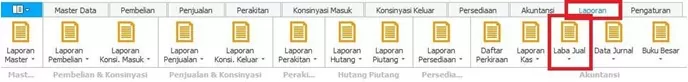 Menu Laporan Laba Jual adalah menu untuk pelaporan hasil dari laba kotor dalam transaksi. Proses laba ini belum dikurangi dari retur.