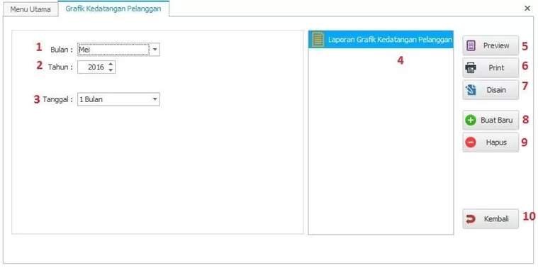 Berikut ini adalah cara melihat laporan grafik kedatangan pelanggan :