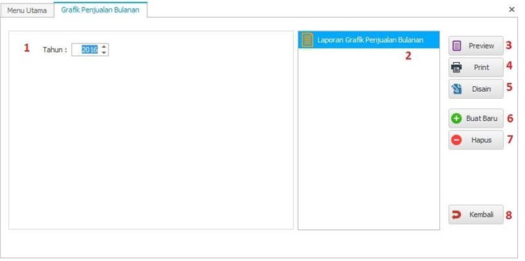 Keterangan form laporan grafik penjualan per bulanan: