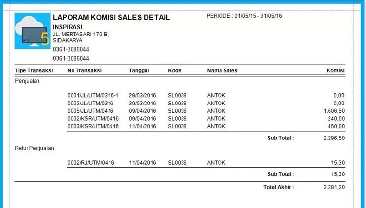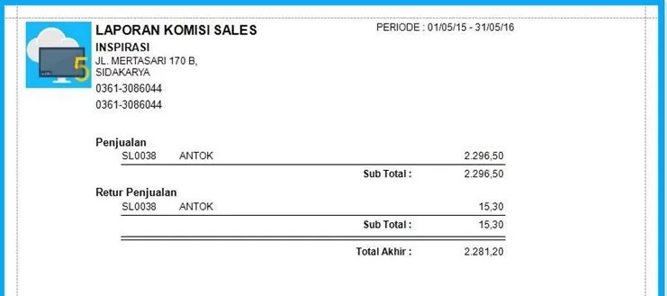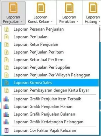 Laporan ini berfungsi untuk menampilkan / mencetak komisi Sales.