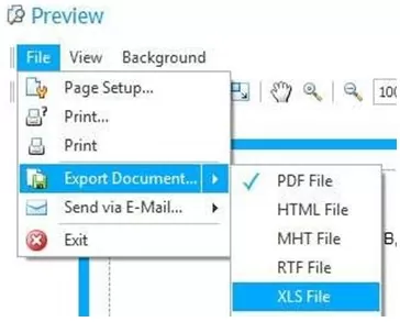 4. Pilih Format File yang akan di Export. Contoh : XLS = Microsoft Excel, PDF = Adobe Acrobat Reader.