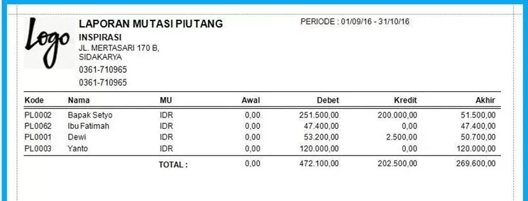 Berikut ini adalah cara melihat laporan mutasi piutang: