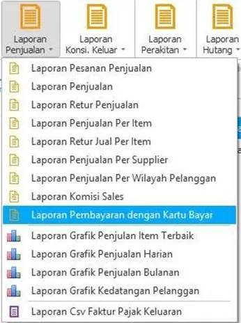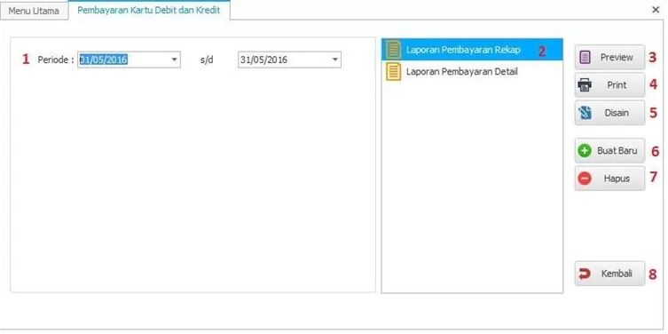 Laporan ini berfungsi untuk menampilkan / mencetak rekap laporan penjualan yang transaksinya menggunakan kartu bayar, seperti Kartu Debit dan Kartu Kredit.