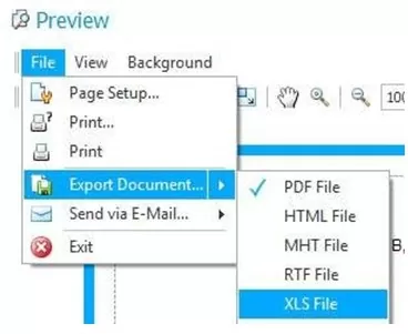 4. Pilih Format File yang akan di Export. Contoh : XLS = Microsoft Excel, PDF = Adobe Acrobat Reader.