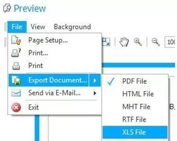 4. Pilih Format File yang akan di Export. Contoh : XLS = Microsoft Excel, PDF = Adobe Acrobat Reader.
