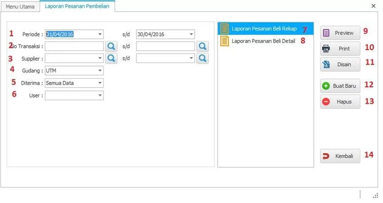 7. Jenis Laporan : Laporan Pesanan Beli Rekap.