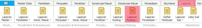 Menu Laporan Piutang adalah menu untuk pelaporan data-data piutang yang pernah dilakukan pada transaksi penjualan, tukar tambah dan tagihan konsinyasi keluar.
