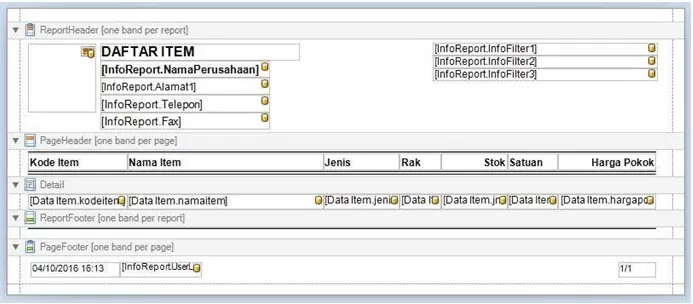 - Bagian Report Header berisi judul dan informasi lainnya. Bagian ini hanya tampil satu kali pada halaman pertama bagian atas.