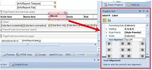 5. Contoh dibawah adalah mengubah posisi Textbox, pada propertys Text Alignment,
