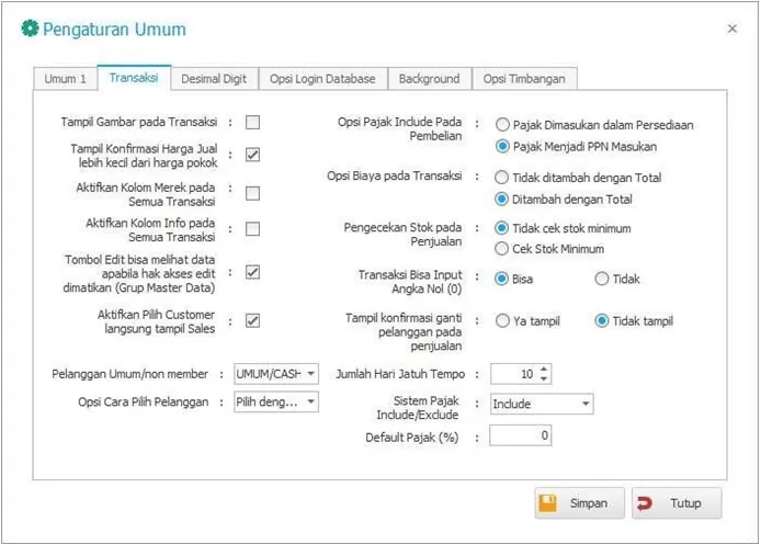 Berfungsi untuk menentukan default nilai pajak pada transaksi.