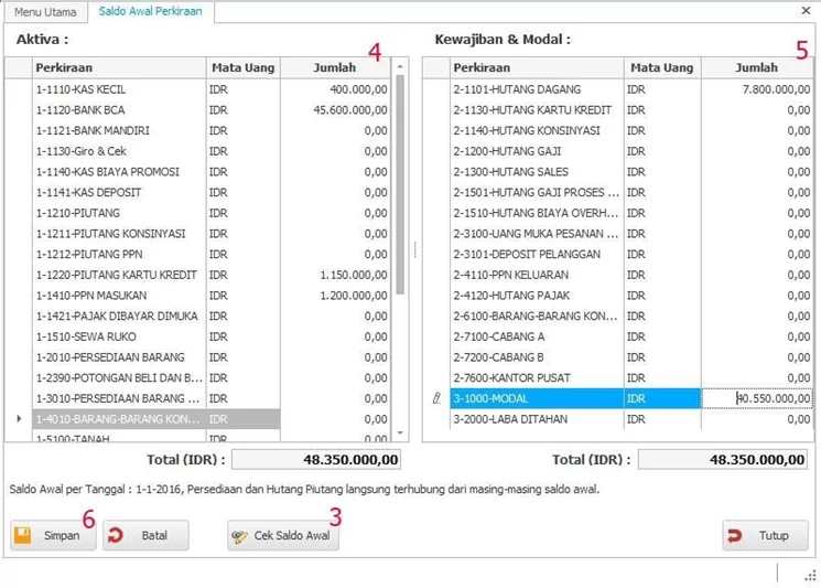2. Klik Saldo Awal Perkiraan,